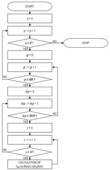 Of course, several constraints on the decision variables should be defined so that the obtained value is best for the problem. The procedure for calculating the energy efficiency of an asynchronous motor is shown in Figure 5.