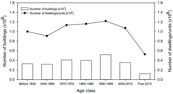 The Portuguese building stock is represented by 86% of residential buildings, corresponding to about 2.46 residential buildings and 7.03 million dwellings [32] for about 10.5 million inhabitants in an area of 92,226 km2.