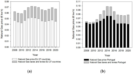 (a) Natural Gas prices for household consumers regarding: (a) EU-27 countries and (b) Portugal (data source [40]).