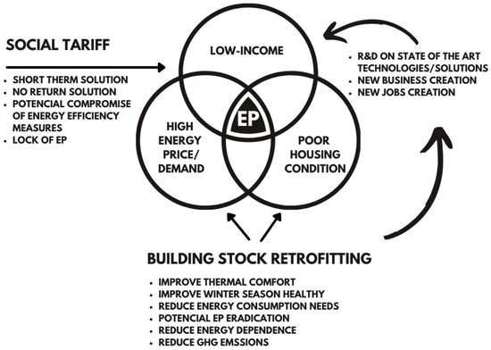 Originally, EP derived from fuel poverty, a concept that appeared in the United Kingdom in the 1970s, due to the energy crisis. In 2000, the first government actions to combat EP occurred through The Warm Homes and Energy Conservation Act [46]. Since then, the theme has been explored in several countries, including France [16,17], Italy [18], Greece [7,19], Spain [20] and Portugal [13,21,22,23].
