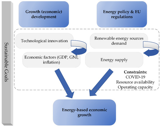 Over the years, several studies have been undertaken to investigate the correlations between RES and economic growth formulated in GDP and GNI indicators. The interconnections were mostly found as positive relations [3,4,5,6,7,8,9,10], and supported by technological innovations [11].