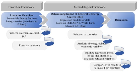 In this paper, the authors used a conceptual framework for defining the impact of RES on the economic growth of Poland and Sweden, as presented in Figure 2. It consists of the following stages: