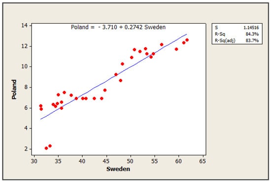 4.3. Regression Model Based on GDP (Variable Y) and Renewable (Variable X1) for Poland and Sweden