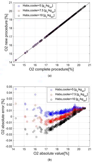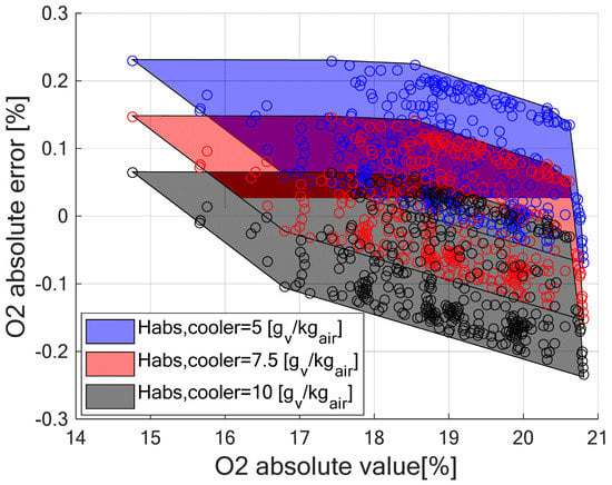 - The absolute error between the measured and predicted intake O2 levels is in the ±0.15% range. It should be noted that the measured O2 levels are affected by the presence of residual water downstream of the cooler of the gas analyzer. The absolute error of the method is in the ±0.25% range, even when this effect is disregarded.