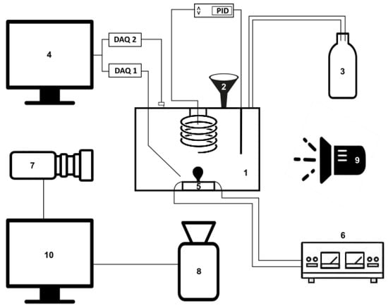 The scheme in Figure 1 identifies the main components of the experimental arrangement. The main component of the experimental setup is the boiling chamber (index 1 of Figure 1), where the experiments are conducted.