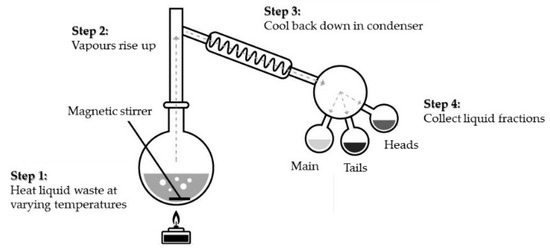 - Dellamando, J.C. Distillation as a Pretreatment Process of Waste Scintillation Solutions; Report IPEN-PUB—137; Instituto de Pesquisas Energéticas e Nucleares: São Paulo, Brasil, 1988; Available online: http://inis.iaea.org/search/search.aspx?orig_q=RN:19079108 (accessed on 17 August 2020).