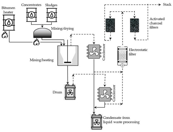 - Zakharova, K.P.; Masanov, O.L. Bituminization of Liquid Radioactive Wastes. Safety Assessment and Operating Experience. At. Energy 2000, 89, 646–649. [Google Scholar] [CrossRef]