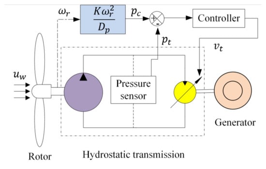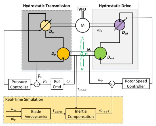 - Mohanty, B.; Dhople, S.; Stelson, K.A. A Dynamical Model for a Hydrostatic Wind Turbine Transmission Coupled to the Grid with a Synchronous Generator. In Proceedings of the 2019 American Control Conference (ACC), Philadelphia, PA, USA, 10–12 July 2019; pp. 5774–5779. [Google Scholar]