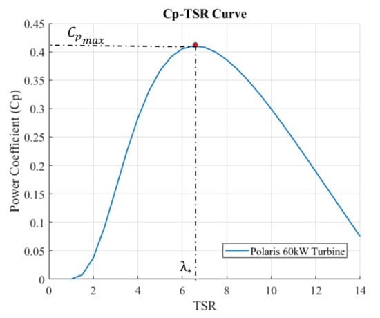 The desired maximum power coefficient, , is achieved by operating the turbine at the optimal TSR, , which is realized by controlling the rotor speed, .