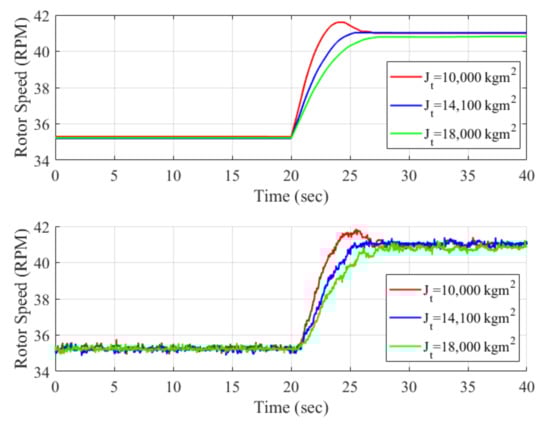 Effect of rotor inertia on the rotor speed (Top: HIL simulated rotor speed; Bottom: Measured rotor speed).