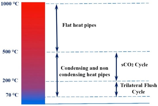 FHPs can be used for heat recovery from LT and MT sources. FHPs that can be manufactured in different configurations can also be used for first-stage heat recovery from HT exhausts. They can also be used for temperature control of spaces and liquid baths. Flat HPs with the right choice of materials and working fluid can be able to recover heat primarily by radiation, but also by convection at temperatures > 200 °C, and they use this heat for power generation through the sCO2 cycle.