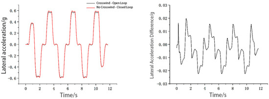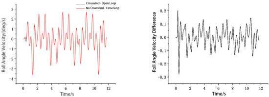 Comparison curves and difference curves of roll angle velocity with and without crosswind effect.
