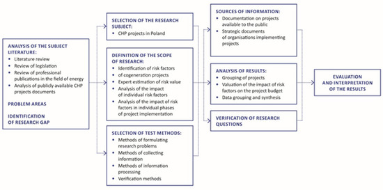 The aim of the study is to systematically classify the project environment and the resulting risk factors. Then, the major CHP projects implemented in Poland are analysed and the risks occurred are presented. The methodology of the study is shown in Figure 3.