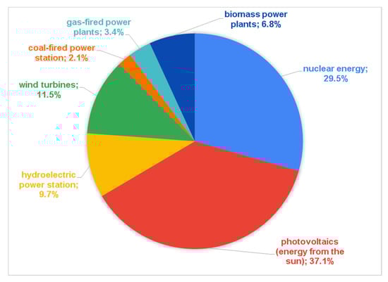 Coal remains the main fuel in the Polish electricity sector, generating 77% of electricity in 2018 and—in line with the published draft of the Polish Energy Policy 2040—will remain the most important fuel in the Polish electricity sector, but with its share dropping to 60% in 2030. It is now necessary to ensure stable electricity supplies and ensure the country’s energy security. Of course, the plans envisage increasing the share of renewable energy sources in gross final energy consumption to 21% in 2030 []. The project also provides for the commissioning of nuclear power plants, the first in 2033 and another five by 2043, which will ensure that the growing demand for electricity is met and contribute to a significant reduction in the national emission of greenhouse gases [].