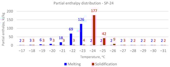 Distribution of the partial enthalpy of the SP-24 phase change material applied. Adapted from [].