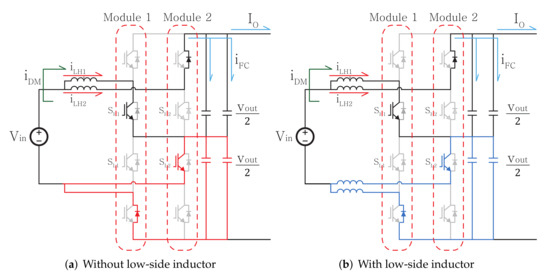 - Lee, K.M.; Baek, S.W.; Kim, H.W.; Cho, K.Y.; Kang, J.W. 3-level boost converter having lower inductor for interleaving operation. Trans. Korean Inst. Electron. 2021, 26, 96–105. [Google Scholar]