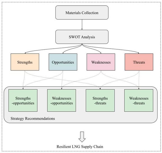 A flowchart of the applied methodology for the LNG supply chain via a SWOT analysis (Source: Compiled by the authors from [30]).