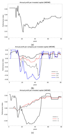 Figure 9a–c show ex-post analyses of the profitability of the investment projects over time. We compare the internal rate of return (IRR) for all investments done in the three cases. Each dot represents an investment that was made in a particular year.