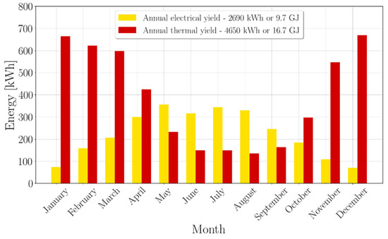 Monthly—thermal and electrical—yield from the PVT collectors.