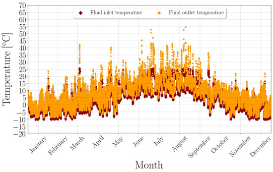 Figure 21 shows the hourly profile of the fluid temperature at the inlet and outlet of the PVT collector. Note that the fluid temperatures are higher in the summer period due to elevated ambient temperature and the increased solar gains.