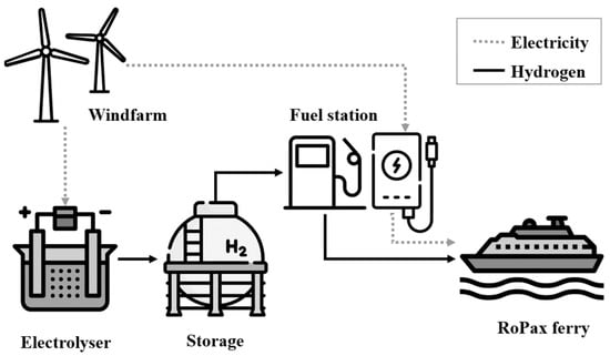 Marine hydrogen fuel system (Source: Created by author using Flaticon.com (accessed on 31 March 2021)).