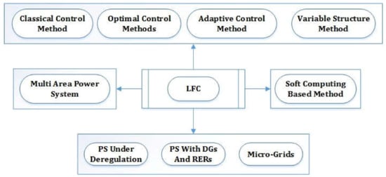 Different control methods in LFC development include classical control, optimal control, adaptive control, variable structure control and robust control. The restructuring of rules and regulations imposed by the government introduced deregulations in the power system. These days, electricity is traded as a commodity, creating the issue of transmission congestion. The multi-area deregulated systems create the issues of transmission congestion focusing on the need of sophisticated LFC structures. With more people installing renewable energy systems at home, the concept of distributed generation is getting more attention. The power generated at different isolated locations creates power quality issues which can be addressed using a better-designed LFC. From a configuration point of view, the power system can be categorized as a single-area power system and multi-area power system.