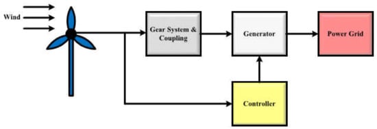 A single-area power system contains only one renewable energy source which can be wind, solar, biomass, hydel or tidal. It is a simple system where power generation and utilization are easy. A wind turbine-based single-area power system is shown in Figure 3. Here, the feedback loop contains a controller which tracks the output signal and adjusts the parameters of the system to maintain output power quality.