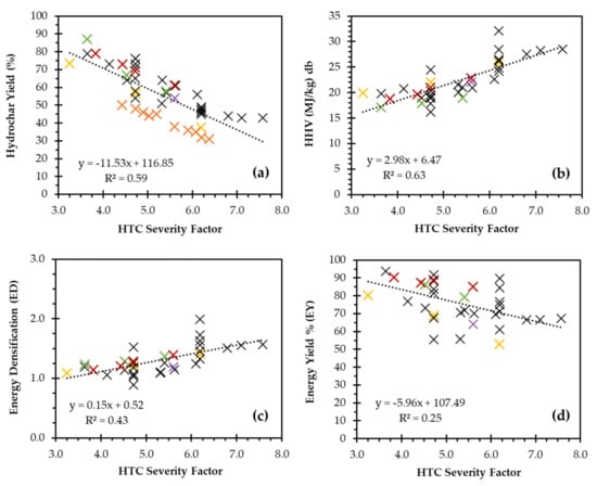- Heidari, M.; Norouzi, O.; Salaudeen, S.; Acharya, B.; Dutta, A. Prediction of Hydrothermal Carbonization with Respect to the Biomass Components and Severity Factor. Energy Fuels 2019, 33, 9916–9924. [Google Scholar] [CrossRef]