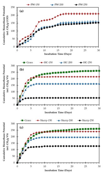 | Sample | EBMP (mL CH4/g VS) | TBMP (mL CH4/g VS) | BI (%) |