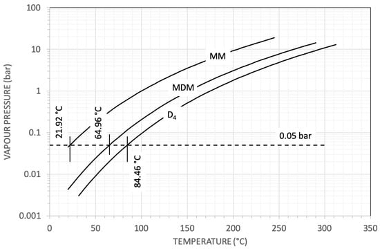 Vapour pressures curves for some siloxanes. From Aspen Plus v.9.0.