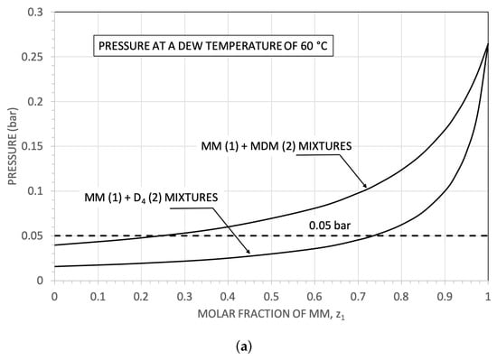 With respect to , only a mixture with a molar composition provided the required minimum hot oil temperature and an adequate condensation pressure (see Figure 13b and Table 5).