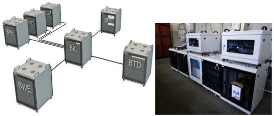 A prototype hybrid power supply system was devised in order to prepare a military-like installation, where the energy storage block was based on lead-acid batteries. The entire system was divided into individual functional blocks as presented in Figure 3: