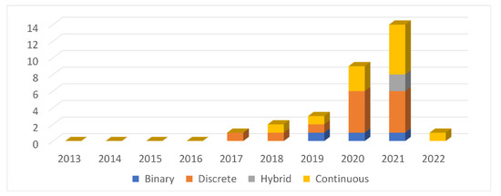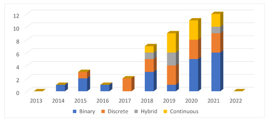 - An article was excluded if it did not provide sufficient details to determine whether the action space was binary, discrete or continuous [31,32,33,34].