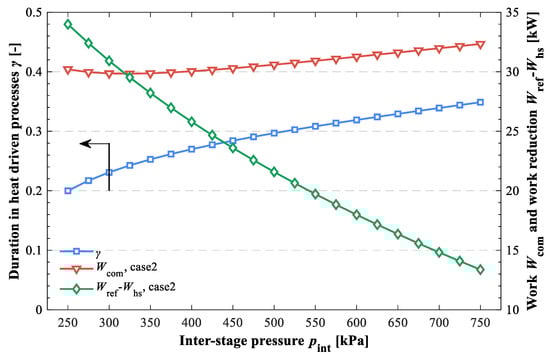 Effect of inter-stage pressure for two-stage cycle with thermal and mechanical compression processes in case 2.