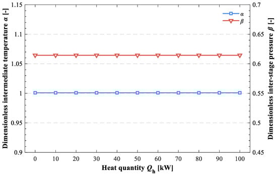 Effect of heat quantity on dimensionless optimum intermediate temperature and inter-stage pressure.