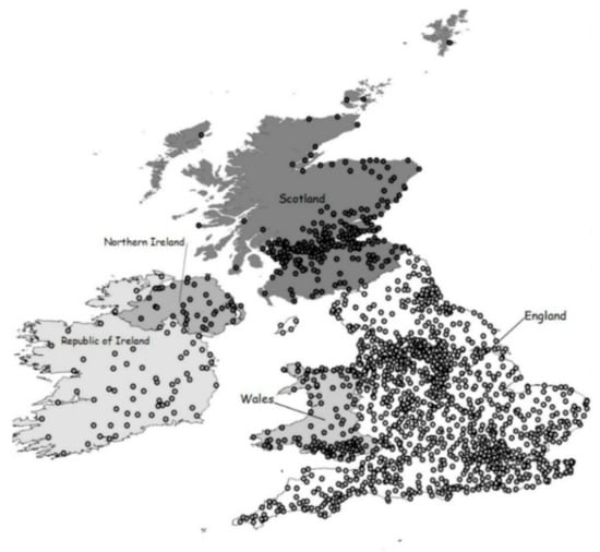 Known and suspected locations of manufactured gas sites in the British Isles [55].