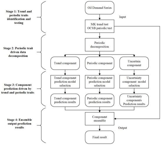 As shown in Figure 1, the proposed trend- and periodicity-trait-driven decomposition-ensemble prediction model consists of four main stages, which are elaborated below.