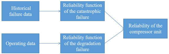 Natural gas compressor units are widely used in natural gas pipeline networks [1,2,3,4]. For example, the natural gas in transmission pipeline systems is driven by compressor units to ensure continuous transport and delivery to its customers [5,6], and compressor units are also used in underground gas storage to increase the pressure of the natural gas to a level sufficient for injection [7,8]. Obviously, natural gas compressor units play a significant role in natural gas pipeline networks; thus, compressor unit failures are major threats to the security of the gas supply [9,10,11]. Therefore, the reliability of natural gas compressor units is an issue of high concern, and the aim of this study is to develop a systematic methodology to assess and predict the reliability of natural gas compressor units from a comprehensive perspective.