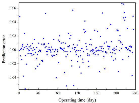 where N is the number of data samples, is the actual value of the performance parameter with respect to time ti, and is the prediction value of the performance parameter.