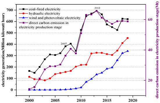 - Direct carbon emissions during the stage of electricity production had the largest share of the entire electricity life cycle, and they accounted for 45.42% of total carbon emissions in Gansu Province.