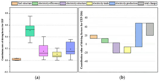 Contribution rates and contribution value of driving factors for CEP. (a) Contribution rates of driving factors for CEP. (b) Contribution value of driving factors for CEP.