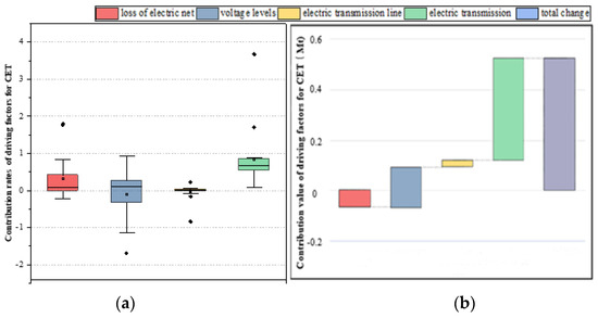 Contribution rates and contribution value of driving factors for CET. (a) Contribution rates of driving factors for CET. (b) Contribution value of driving factors for CET.