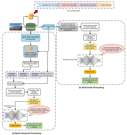 Architecture of—(a) spatiotemporal and (b) multivariate forecasting models.