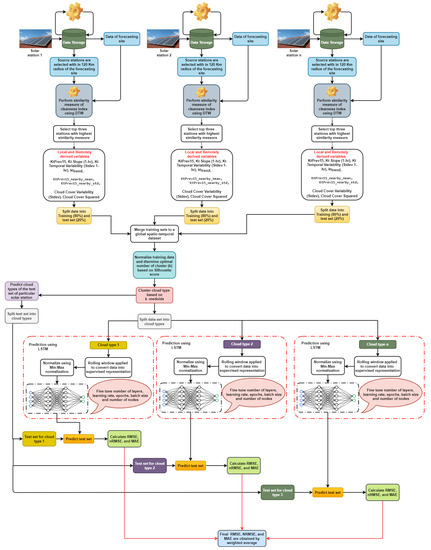 - A separate LSTM model was trained for each cluster that represented different cloud conditions.