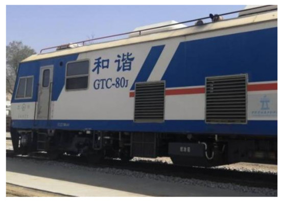 In order to evaluate the performance of the proposed rail surface defect detection system, we performed experiments on the private image dataset collected by the GTC-80J rail inspection vehicle in Gansu, China, as is shown in Figure 7. The dataset contains about 17,000 rail inspection images with a resolution of 1500 × 2180 pixels. The experimental environment is as follows: Ubuntu 16.04, Python 3.7, Keras-2.2.4-TensorFlow-gpu-2.6, Intel(R) Core(TM) i7-7700HQ CPU with 2.80 GHz and NVIDIA Quadro P2000 GPU with 5 GB RAM.