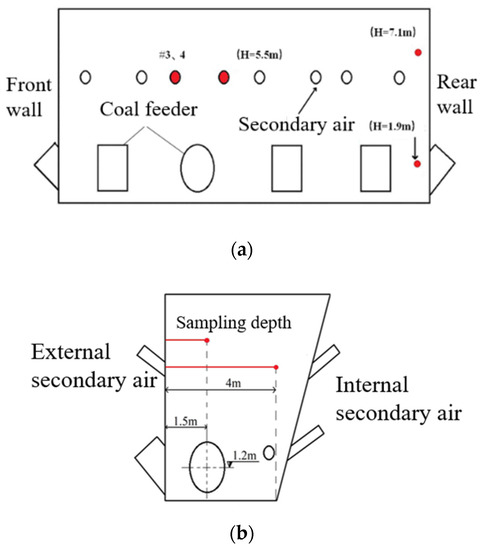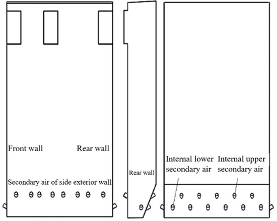 - Wu, J.; He, H. The influence on NOx emission of secondary-air in CFB boiler. J. Electr. Power 2014, 29, 542–547, 553. (In Chinese) [Google Scholar]
