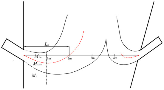 In the experiment, the secondary air is injected into the furnace at 30° to the horizontal direction, and the corresponding jet trajectory was similar to a parabola, as shown in Figure 5. The particle concentration at the corresponding height can be calculated through the pressure measurement of two corner-measuring points, and the particle concentration near the secondary air jet was about 0.018. Relevant contents can be found in our previous work [26]. Further calculations showed that the depth of the horizontal jet under 97% and 60% BMCR conditions was 2.30 m and 2.10 m, respectively.