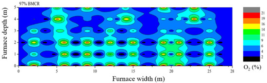 Oxygen distribution in the furnace section at the upper secondary air nozzle axis.