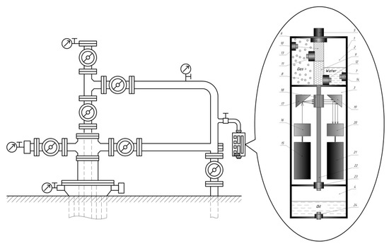 A stationary wellhead device is designed to measure the optical properties of oil at the wellhead (Figure 10) and is connected to the well flowline [112]. At the same time, it can be used for studying the optical properties of any liquid media in other areas of the oil and gas industry.