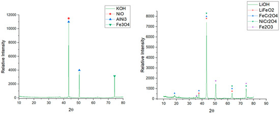 The diffractograms obtained for KOH and LiOH are shown in Figure 12.